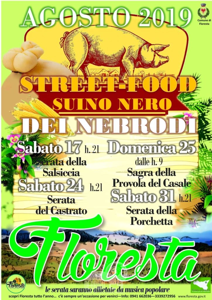 Quattro gli appuntamenti dedicati alla carne, ai suoi sapori, alle delizie della cucina tradizionale e alle bontà del territorio, a Floresta il via allo street food suino nero dei Nebrodi. Si partirà questa sera 17 agosto alle ore 21 con la serata della salsiccia di suino nero, in programma in concomitanza con la Festa della Madonnina della Strada.