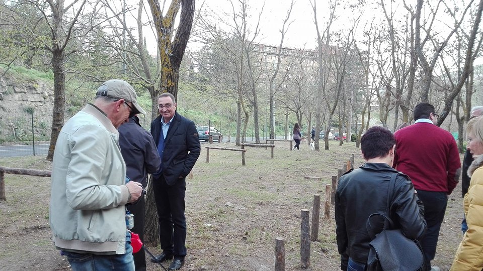 “Questa è un’iniziativa nata – spiega il sindaco, – grazie alla collaborazione dell’Azienda Foreste Demaniali, il geometra Riccardo Gallea. Nei mesi scorsi lo portai qui dicendo “abbiamo quest’area che non sappiamo come utilizzare c’è venuta l’idea di utilizzarla per la sgambatura cani” e il geometra Gallea, con lo spirito positivo di impegno e la professionalità che lo ha sempre caratterizzato, non se l’è fatto ripete. Abbiamo subito concordato di fare piccoli interventi; quello che vedete dalle panchine, a questi piccoli attrezzi e percorsi per i nostri amici a quattro zampe, sono stati realizzati dall’Azienda Foreste Demaniali, quindi dagli operai della Forestale. Il Comune ha messo a disposizione l’area, ha realizzato la piccola fontana, i cestini, il cancello e qualche altro piccolo intervento. Quindi con poche cose, ma con tanta buona volontà, siamo riusciti a realizzare tutto questo. Desidero ringraziare in quest’occasione il geometra Riccardo Gallea, l’Azienda Foresta Demaniali, il geometra Campagna, braccio operativo, per questa attenzione nei confronti della nostra comunità e degli amanti dei cani.”