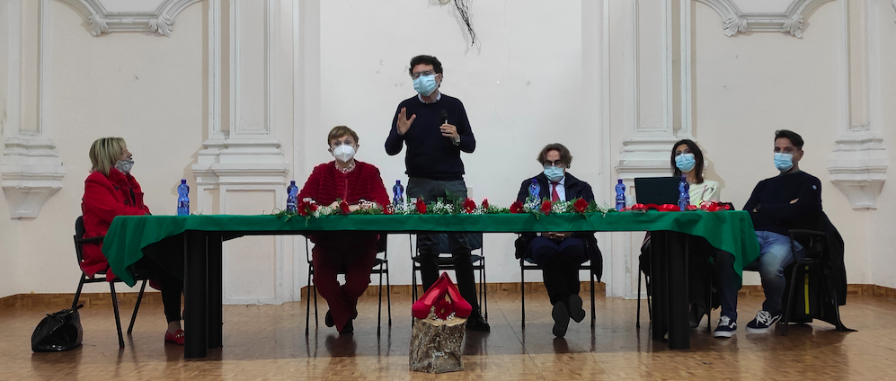 Presenti al tavolo degli interventi, insieme a Maria Piera Franco, il sindaco Luigi Miceli, il vicesindaco e assessore alla Cultura e i Servizi Sociali Angelo Tudisca, la scrittrice Santa Franco, che ha letto alcuni brani tratti dal suo libro “Respiri di Ginestra” e gli artisti Daniela Campisi e Luigi Fatuzzo, curatori delle fotografie e dei dipinti.