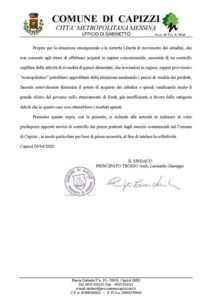 Ho chiesto dunque che vengano predisposti appositi servizi di controllo dei prezzi praticati dagli esercizi commerciali nel Comune di Capizzi in modo particolare per beni di prima necessità al fine di tutelare la collettività” – conclude il sindaco.