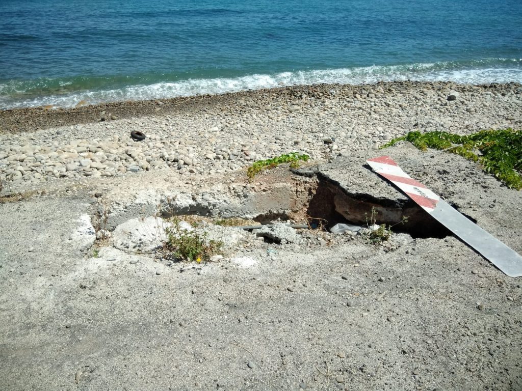 Non si sa se la zona in qualche modo sia stata inserita negli interventi di messa in sicurezza del Contratto di costa, essendoci una grossa voragine sulla strada, creata dall’erosione delle mareggiate, peraltro utilizzata per la discesa a mare. La zona con una piccola area a verde si presenta con una mini discarica.