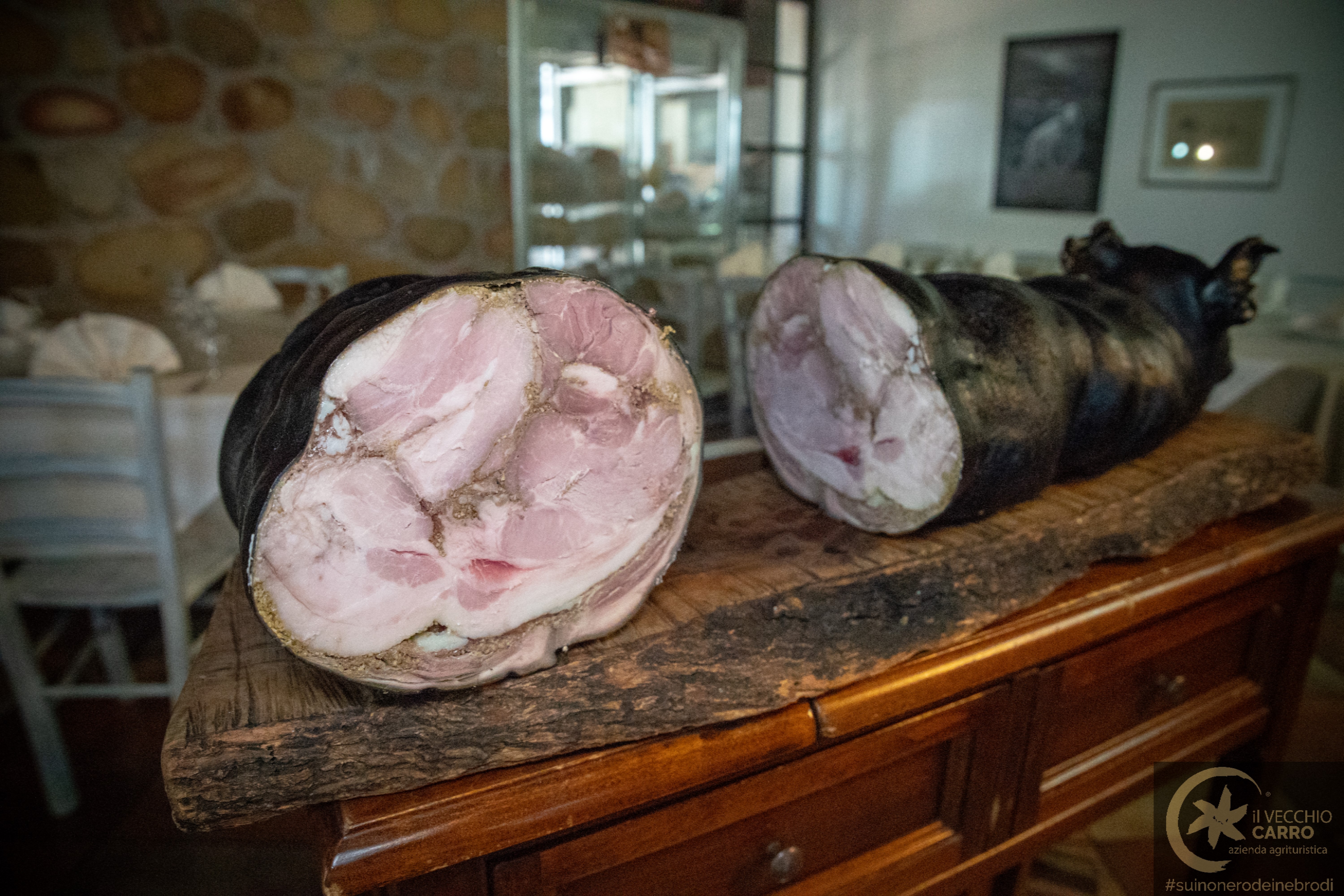 La porchetta di maialino nero, in particolare, è diventata col tempo uno dei prodotti più apprezzati e richiesti dalla clientela. Per la sua produzione vengono selezionati i lattonzoli con un peso che varia dagli 8 ai 20 kg. Il gusto della carne viene esaltato dai maestri salumieri attraverso un procedimento di massaggiatura con il sale marino siciliano e con vari aromi naturali, che precede la cottura nel forno a legna dell’azienda agricola, secondo l’antica ricetta di famiglia. Non vengono utilizzati né additivi, né conservanti.