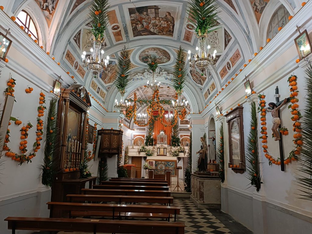 Due settimane di lavoro certosino, per alcuni dei 45 iscritti alla Confraternita di San Carlo Borromeo, sempre meno e pochi per svariati motivi, e a detta del cassiere Platia Domenico, di un vivaio che, purtroppo, stenta a fiorire: circa 600 kg di arance, provenienti da contrada Romei nell’agro del comune di Mistretta, quasi a Km zero, legate in ‘cunocchi’ e fissati ai supporti di ferro, i cui disegni omaggiano Gesù nell’Ostensorio.