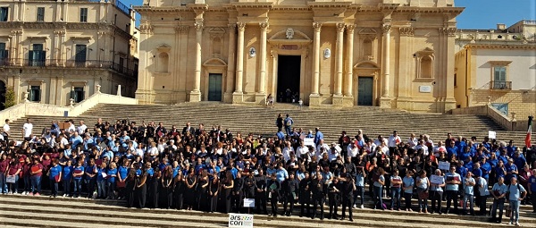 La giornata si è aperta con il canto a cori riuniti schierati nella scenografica scalinata della Cattedrale di Noto, dell’Inno alla gioia tratto dalla IX Sinfonia di Beethoven. Durante la giornata, i 21 cori si sono poi esibiti in varie chiese e spazi all’aperto resi disponibili dagli organizzatori. La memorabile giornata si è conclusa con il canto, da parte di tutti i 600 coristi, del “Va pensiero” di Verdi che ha suscitato una emozione profonda tra i coristi ed il numerosissimo pubblico presente.