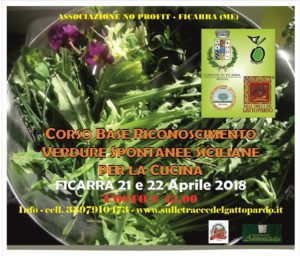 Un’occasione per vivere un weekend tra buon cibo, natura e cultura: appuntamento a Ficarra sabato 21 e domenica 22 aprile con l’iniziativa “Riconoscimento verdure spontanee siciliane per la cucina”, organizzata dall’Associazione “Sulle tracce del Gattopardo” di Ficarra, con il patrocinio del Comune di Ficarra Città dell’olio e dell’Ordine degli Agronomi della provincia di Messina.