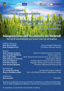 L’appuntamento, per l’inaugurazione è per venerdì 27 maggio a partire dalle 16,30 nei locali dell’incubatore a Galati Mamertino, dove si terrà un convegno cui, oltre al presidente del Parco e al sindaco di Galati Mamertino Bruno Natale, parteciperanno l’assessore alle Attività produttive Mariella Lo Bello, il console della Tunisia a Palermo Farhat Ben Souissi. Alla tavola rotonda dal titolo “Contiviamo talenti: la tua idea da progetto a impresa”, parteciperanno il rettore dell’Università di Messina Pietro Navarra, Umberto La Commare, presidente del Consorzio Arca dell’Università di Palermo, il prorettore dell’Università Kore di Enna Giovanni Tesoriere, Luca Altamore (Facoltà di agraria dell’Università di Palermo), Carlo Giuffré (responsabile di network internazionali per lo startup di impresa), Giuseppe Giambrone (esperto legale), Vincenzo Cordone (esperto di programmazione di Fondi Ue). E’ presta anche la testimonianza dell’azienda nebroidea Oro di Sicilia, produttrice di zafferano e derivati con la degustazione di prodotti.