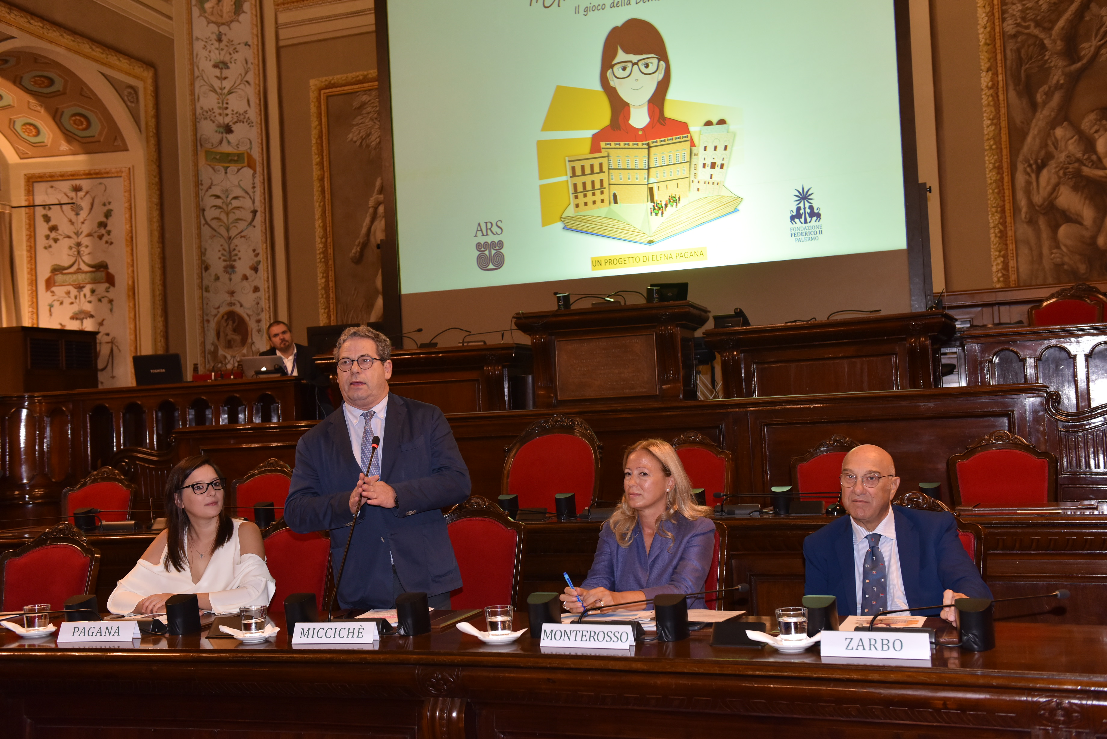 Presenti a Sala d’Ercole il direttore generale della Fondazione Federico II, Patrizia Monterosso, l’assessore alla Pubblica istruzione Roberto Lagalla e il direttore, facente funzioni dell’Ufficio scolastico regionale, Raffaele Zarbo.