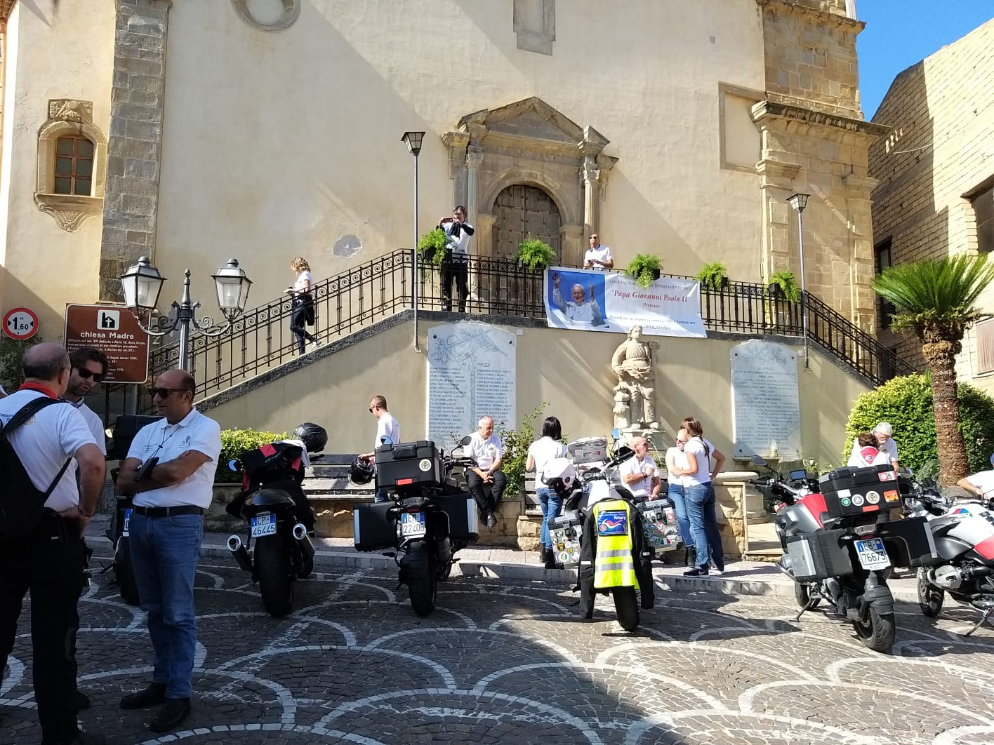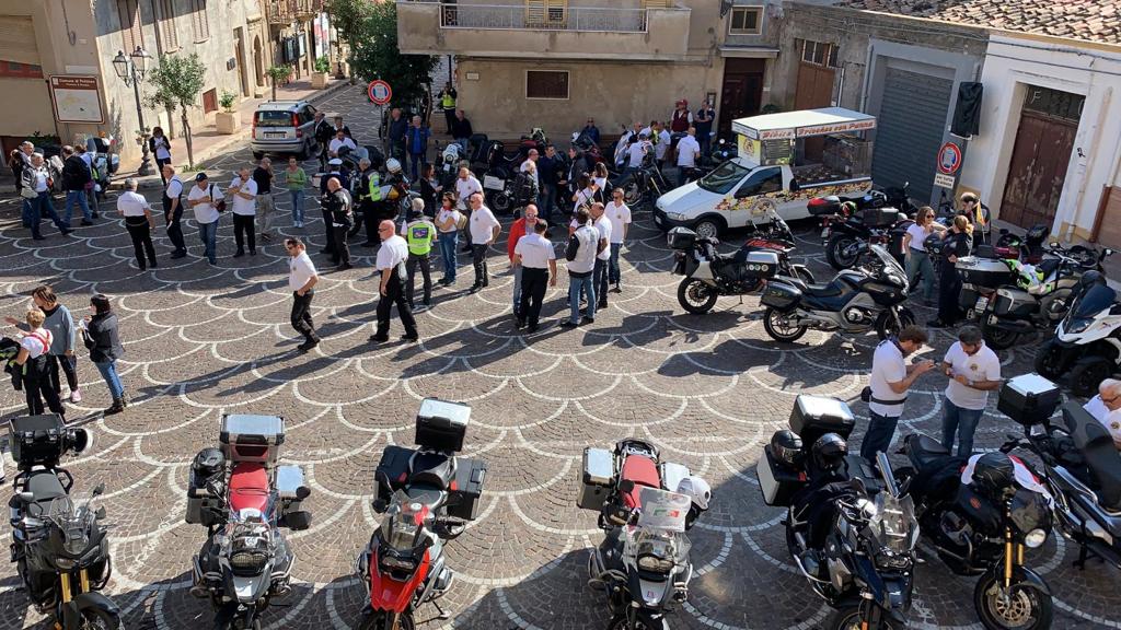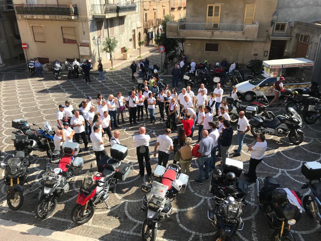 Tanti i motociclisti giunti da più parti d’Italia, impegnati nel giro della Sicilia con tappe a Sciacca, Catania, Palermo, e nella mattinata di sabato 19 ottobre impegnati nella visita delle opere della Fiumara d’arte di Antonio Presti. Prima di iniziare il tour tra le opere però i centauri hanno fatto sosta a Pettineo, accolti dai rappresentanti dell’Amministrazione comunale nella centralissima piazza Duomo; dopo la visita guidata nella chiesa Madre per ammirare il trittico del Gagini (XVI sec), entusiasmati anche dalla splendida giornata autunnale, tutti i partecipanti hanno gustato la famosa “granita di limone seccagno di Pettineo” per poi risalire di nuovo in sella, alla volta della “Piramide del 38° parallelo”a Motta d’Affermo.