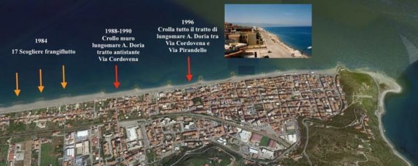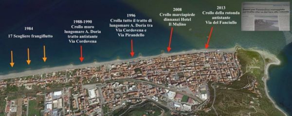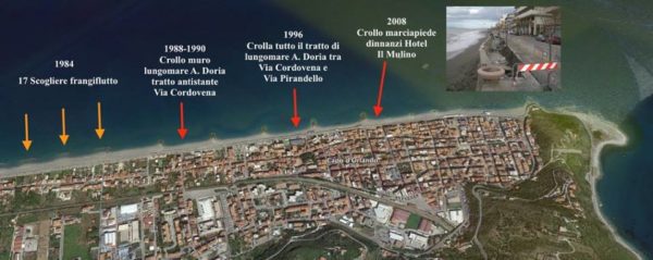 Dopo l’intervento del 2011, la spiaggia sotto l’Auletta, l’ultima spiaggia naturale che era rimasta, a causa del blocco dell’alimentazione è entrata in crisi. Oggi vediamo le conseguenze.