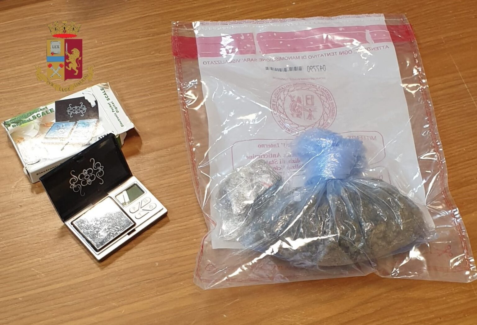 La successiva perquisizione ha portato al rinvenimento e sequestro di sostanza stupefacente risultata essere, dalle successive analisi del locale Gabinetto di Polizia Scientifica, marijuana (circa 60 grammi) e hashish (circa 40).