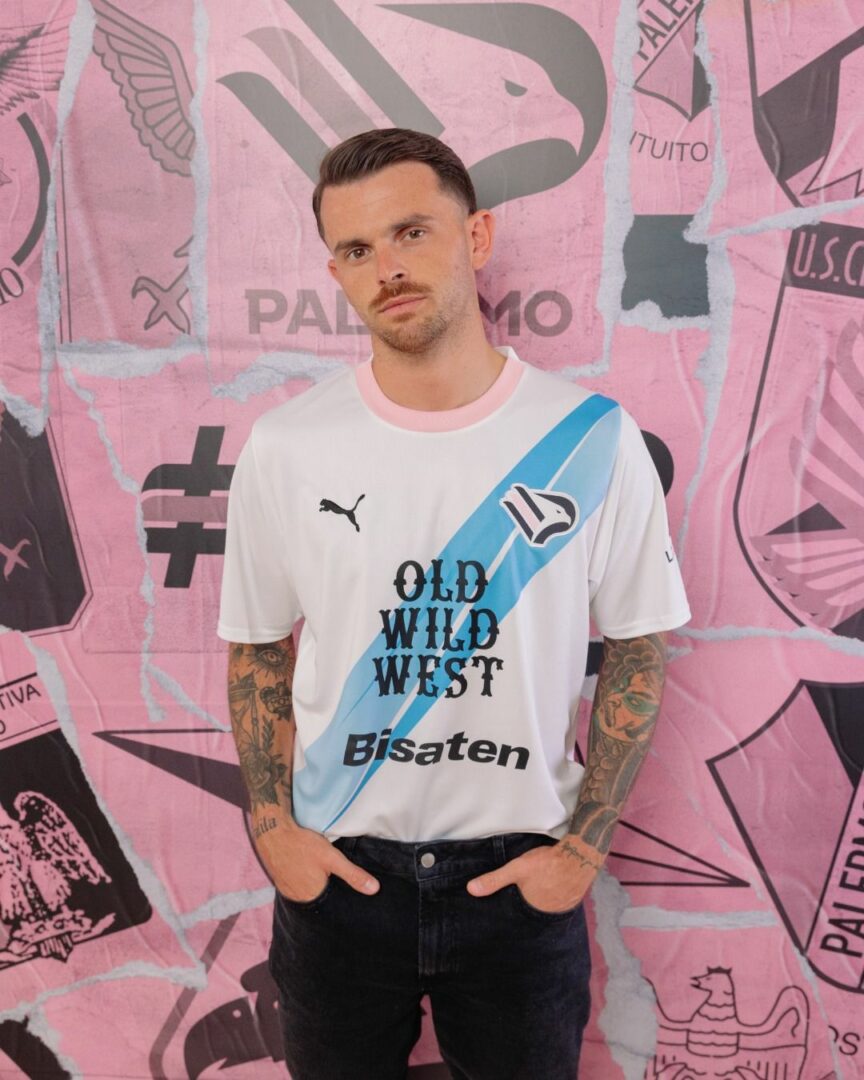 Il nuovo Third Kit si presenta a base bianca come da tradizione. Ma con una novità assoluta nella storia del Palermo: una fascia sfaccettata che taglia in obliquo il petto della maglia con diverse sfumature di celeste, creando un’idea di dinamismo e forme in movimento. Accanto alla dominante celeste, che riprende i colori istituzionali del City Football Group, il rosa e nero arricchiscono il kit con dettagli e accenti cromatici, come nel colletto tondo, negli angoli della maglia e degli shorts, nei loghi e nel lettering.