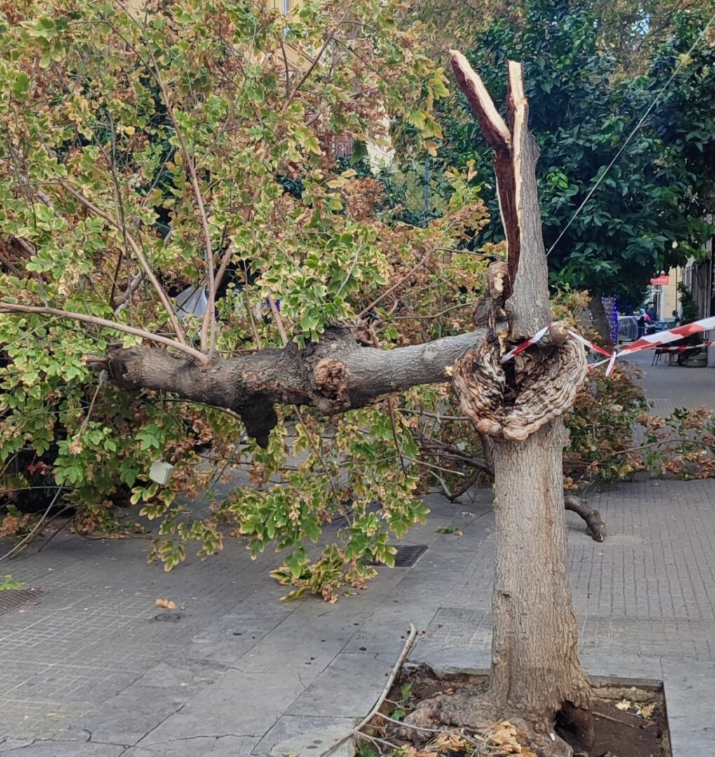 In via Enrico Albanese un grande albero è crollato al suolo occupando l’intera carreggiata e danneggiando alcune auto in sosta. Danni a dei veicoli pure in via Leopardi. Anche a Borgo Ulivia si segnalano stradicamenti di alberi.