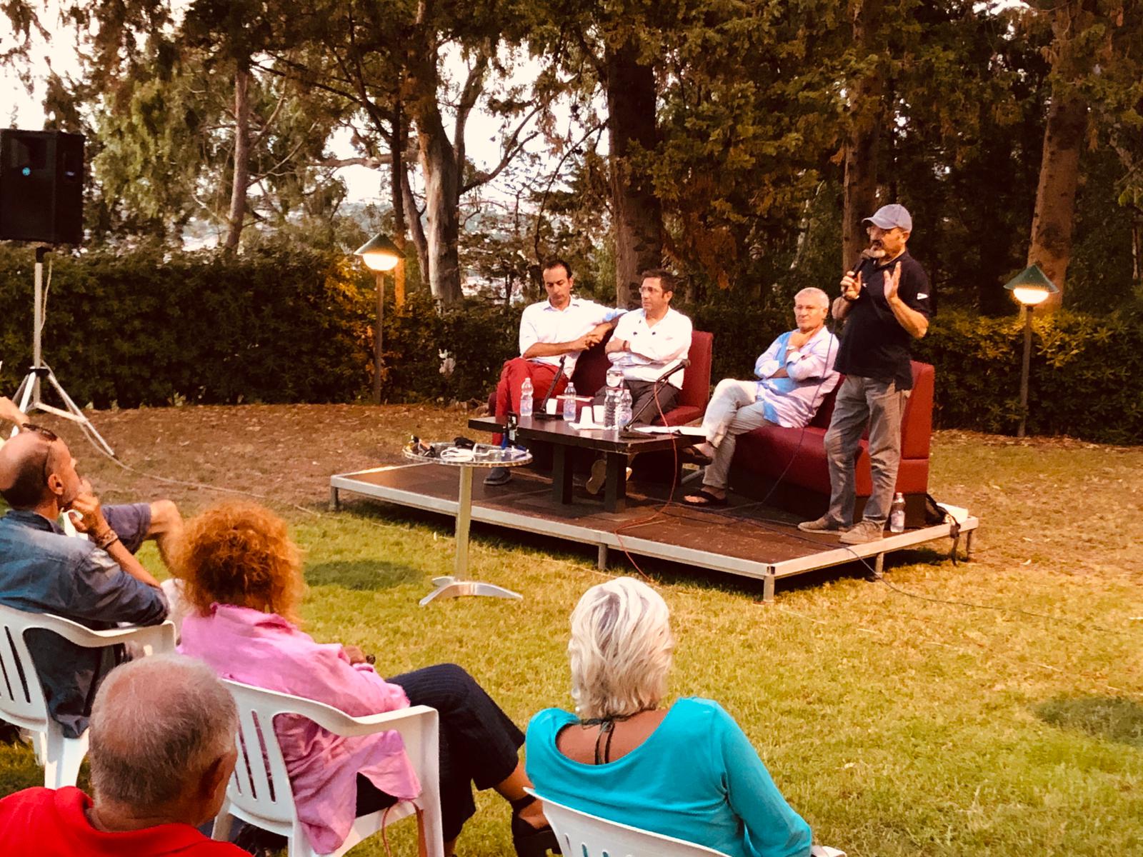 Dopo un incontro a Ficarra, in cui ha dialogato con il giornalista Massimo Scaffidi, Pino Aprile, ha fatto tappa a Capo d’Orlando a Villa Piccolo, accolto dal padrone di casa, il presidente della Fondazione Famiglia Piccolo di Calanovella, Andrea Pruiti Ciarello. Ad accompagnare il fondatore del Movimento 24 Agosto, Franco Calderone, coordinatore per la Sicilia dello stesso Movimento. L’incontro è stato organizzato dal presidente del circolo di Brolo, Nino Ricciardello, che ha anche introdotto i lavori. A portare i saluti istituzionali, il presidente del Consiglio di Capo d’Orlando, Carmelo Galipò.