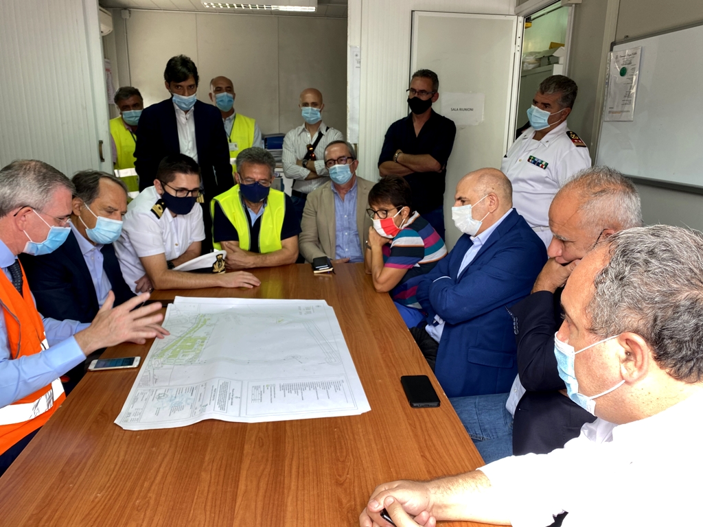 Importante vertice operativo questa mattina presso il cantiere del Porto dei Nebrodi di Sant’Agata Militello con il sopralluogo dell’assessore regionale alle infrastrutture Marco Falcone.