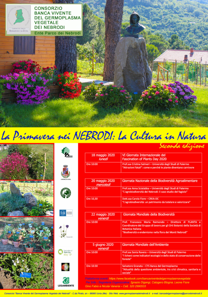 Gli eventi saranno trasmessi in diretta Facebook a partire dalle ore 10,00 sulla pagina della Banca del Germoplasma Vegetale dei Nebrodi