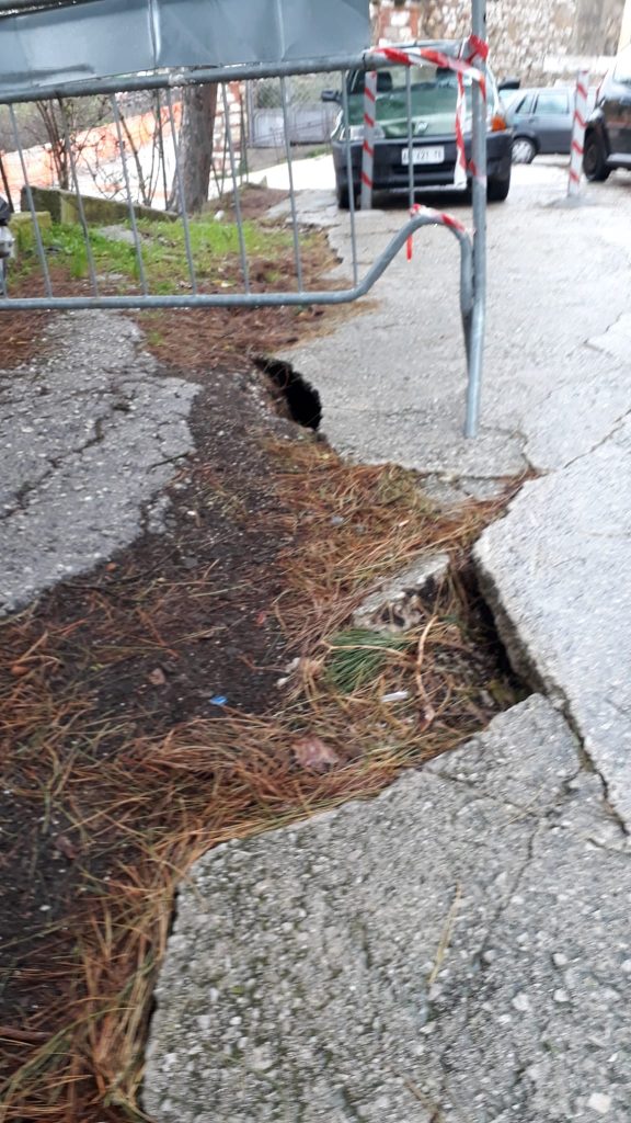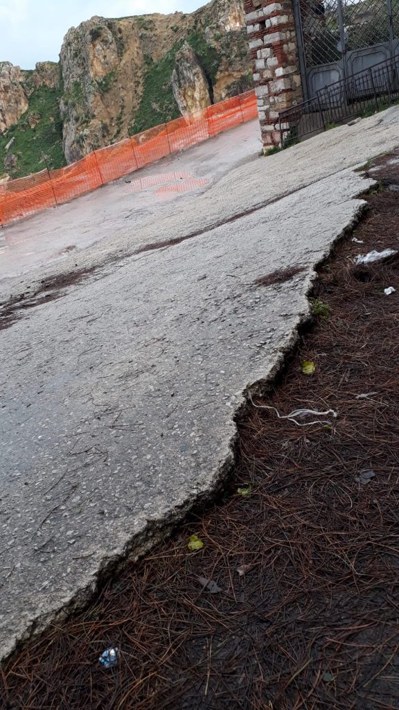 All’inizio dello scorso anno sono cominciati i lavori per la messa in sicurezza del Quartiere, via Normanni, via Libertà e via IX Settembre, la zona sotto Roccaforte con il costone che porta a San Nicolò. Ad agosto 2021 si interrompono per una variante. Dal mese di agosto è tutto fermo, con grave disagio e problemi ad un angolo già dissestato e che con la distruzione dei tiranti e le trivellazioni fatte è stato ulteriormente compromesso, come si vede dalle foto.