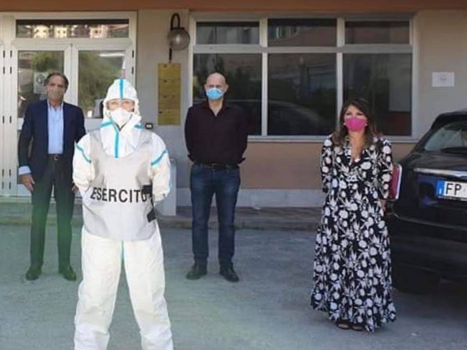Questa mattina negli istituti superiori di Sant’Agata Militello è giunta la squadra specializzata della Brigata Meccanizzata Aosta di Messina, dell’Esercito Italiano, che in questi giorni sta intervenendo con le operazioni di sanificazione straordinaria anti Covid-19 negli istituti scolastici della provincia di Messina, alla vigilia degli ormai imminenti esami di stato. A ricevere la squadra specializzata presso il Liceo scientifico “Sciascia – Fermi” erano presenti stamani la dirigente Maria Larissa Bollaci insieme al sindaco Bruno Mancuso.