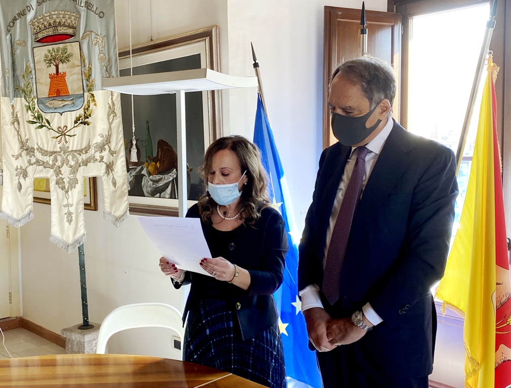 Si è insediata ufficialmente questa mattina in giunta Valeria Fazio (CLICCA QUI PER LE INTERVISTE), quinto assessore dell’esecutivo santagatese, guidato dal sindaco Bruno Mancuso. Il consigliere comunale del gruppo di maggioranza, eletta per il suo secondo mandato alle amministrative del 2018 come candidato più votato con 990 preferenze, ha prestato giuramento al castello Gallego, nell’attuale aula consiliare, davanti al sindaco stesso ed agli altri componenti della giunta, alla presenza del segretario generale del comune, dottoressa Cinzia Chirieleison e del presidente del consiglio comunale Andrea Barone.