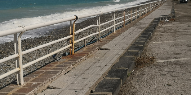 La spaccatura sul marciapiede già crollato in più punti si è allungata e, a tutt’oggi, permane una preoccupante voragine. L’intera zona per motivi di sicurezza è stata transennata. Lo scorso dicembre anche una struttura balneare che si trova nelle immediate adiacenze ha subito notevoli danni.