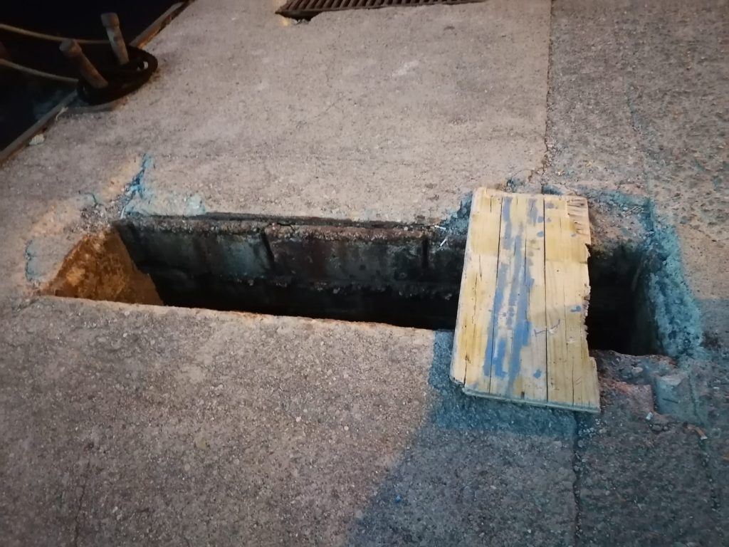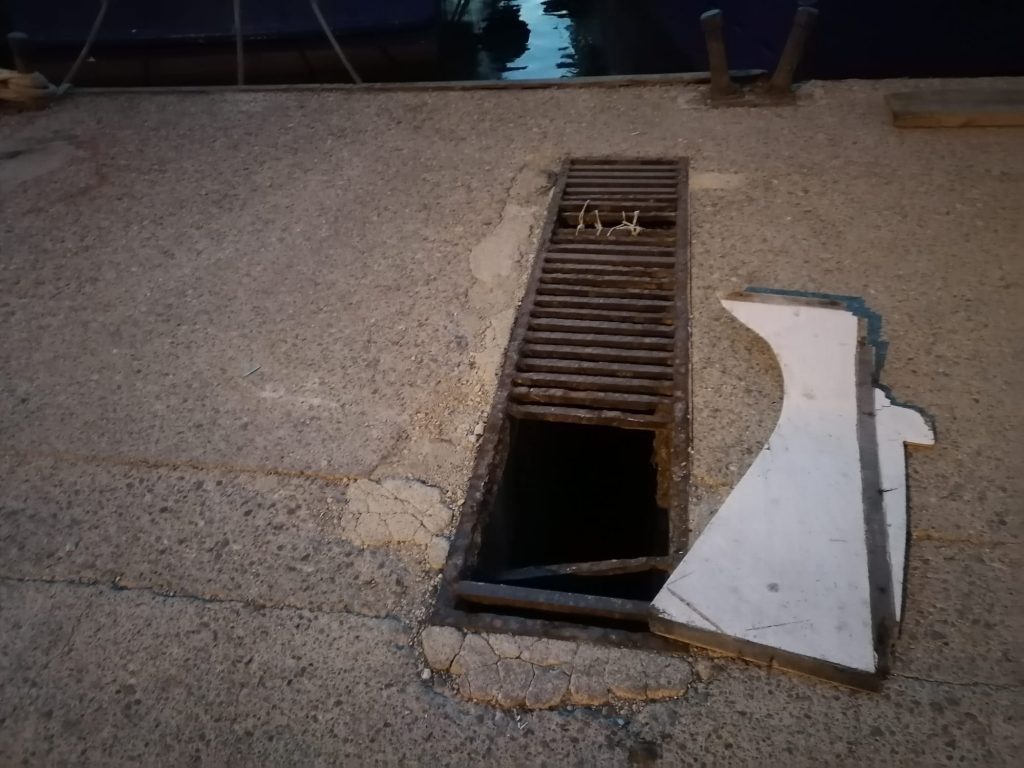Decine di pozzetti aperti sufficienti a farci cadere una persona, profondi più di un metro, non segnalati e soprattutto senza alcuna recinzione di plastica. Succede al porto di Sant’Agata Militello.