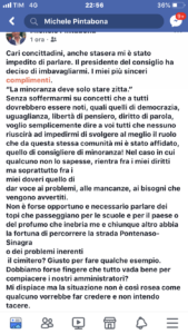 Ad innescare la miccia la richiesta del consigliere Pintabona di chiarimenti circa la presenza di roditori nel plesso della scuola secondaria di primo grado ed in particolare la richiesta al sindaco del perché la chiusura della scuola era stata disposta a partire da giorno 1 dicembre dopo ben quattro giorni dalla segnalazione della dirigente scolastica, avvenuta il 26 novembre. A questo punto la presidente Gaudio prontamente toglieva la parola al consigliere Pintabona, impedendo di fatto ai consiglieri comunali di minoranza l’esercizio dei relativi compiti istituzionali e li costringeva ad abbandonare la seduta (nell’immagine il post del consigliere).