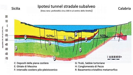 «È poco probabile – scrive Saccà – che 4 km di galleria subalvea possano costare più del ponte a campata unica da 3.300 metri». I tempi di percorrenza sarebbero migliori (circa 15 minuti tra Messina centro e Reggio Calabria centrale) e minori i costi di gestione, manutenzione e pedaggio: «Il tunnel subalveo salvaguarda la bellezza naturale dello Stretto e minimizza la necessità di espropri che molto hanno contribuito a fare crescere il movimento No Ponte». All’Agi l’ingegner Saccà ha spiegato che l’ipotesi dal punto di vista geomorfologico si fonda sull’esistenza nello Stretto di una «sella» tra Villa San Giovanni e la Contrada Arcieri di Messina. Una zona profonda 170 metri e larga due chilometri: «Scendendo a 50 metri si può scavare un tunnel subalveo…». Il Ministero dei Trasporti ha avviato l’analisi tecnica della proposta, ma il quasi-annuncio di Conte ha innescato la polemica politica.