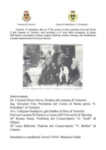 All’incontro, organizzato dal Comune di Tortorici e dal Centro di Storia Patria “S. Franchina”, parteciperanno il sindaco di Tortorici Carmelo Rizzo Nervo, il presidente del Centro di Storia Patria “S. Franchina” Salvatore Foti, il Giudice di Pace di Tortorici Calogero Randazzo, la prof.ssa Lucietta Di Paola dell’Università di Messina, il violinista del Conservatorio “G. Verdi” di Milano Renato Donà e il pianista del Conservatorio “G. Verdi” di Milano Luca Balleri.