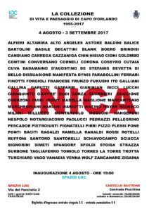 Saranno più di 100 gli artisti in mostra, suddivisi nelle due sedi espositive: Il Castello Bastione, che accoglierà le opere figurative testimoni delle tendenze del primo dopoguerra, e lo Spazio LOC, dove saranno esposti i lavori della collezione che vanno dagli anni 70 ad oggi, con personalità che si sono distinte nell’arte contemporanea con un totale rinnovamento del linguaggio e dei materiali artistici.