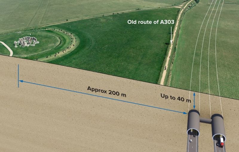 Il contratto per l’ammodernamento della A303, tra Amesbury e Berwick Down, include: 8 miglia (circa 13 chilometri) di strada a doppia carreggiata; un tunnel di circa 2 miglia (3,3 chilometri) di lunghezza per il sottoattraversamento del sito Patrimonio dell’Umanità, in prossimità dell’attuale tracciato della A303, ma ad ulteriori 50 metri di distanza dal monumento di Stonehenge, per ridurne l’impatto sulle aree archeologiche e sulla vista dello spettacolo del sorgere del sole durante il solstizio di inverno; una nuova tangenziale a nord di Winterbourne Stoke; svincoli con la A345 e la A360 su entrambi i lati del sito Patrimonio dell’Umanità.